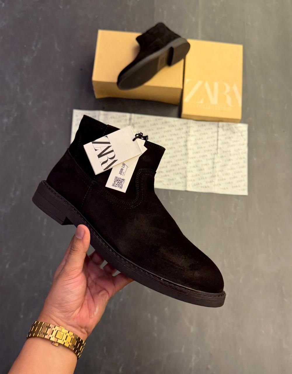 Elevate your style with these timeless Men’s Suede Chelsea Boots from the Zara Collection. Crafted from premium, soft-touch genuine suede leather in a versatile black, these boots are a wardrobe essential.